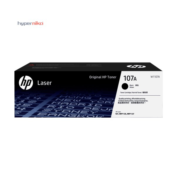 کارتریج اچ پی 107A (کد فنی W1107A) یک کارتریج تونر لیزری مشکی اورجینال است که برای پرینترهای لیزری تک‌کاره و چندکاره سری HP Laser 107 و MFP 135/137 طراحی شده و ظرفیت چاپ استاندارد ۱۰۰۰ صفحه A4 با پوشش ۵% را ارائه می‌دهد. این کارتریج فاقد چیپ در برخی مناطق بوده و از تکنولوژی JetIntelligence برای تشخیص دقیق سطح تونر و جلوگیری از چاپ معیوب استفاده می‌کند.