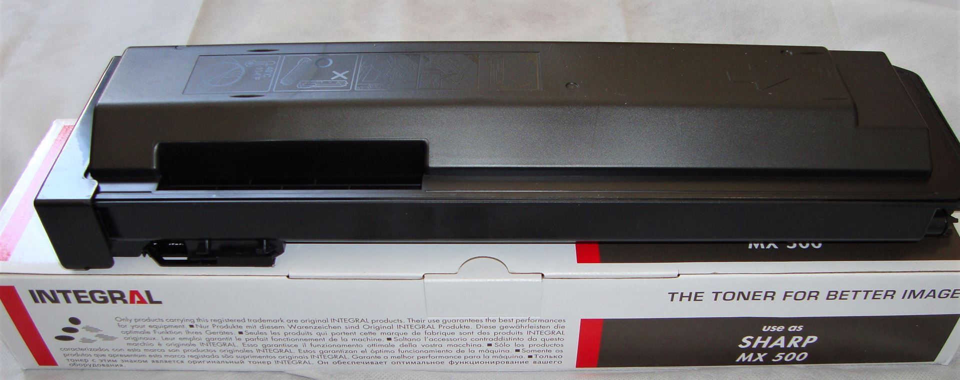کارتریج تونر شارپ مدل MX-500 ساخت شرکت اینتگرال آلمان می باشد. این کارتریج در مقایسه با دیگر کارتریج های متفرقه از کیفیت ساخت بالایی برخوردار است و کاربر می تواند بدون نگرانی از مشکلاتی همچون کیفیت نامناسب چاپ و طول عمر کوتاه کارتریج که معمولا در کارتریج های متفرقه دیده می شود از آن استفاده کند. کارتریج شارپ MX-500 علاوه بر قیمت مناسب تا 40 هزار برگ را در پوشش 6 درصد چاپ می کند. قابل ذکر است این کارتریج قابل استفاده در پرینترهای شارپ سری MX561 نیز میباشد.