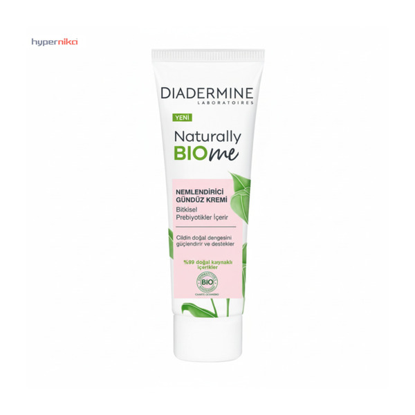 کرم مرطوب کننده و مغذی روز دیادرماین مدل NATURALLY BIO ME یک فرمولاسیون مراقبت از پوست است که برای استفاده روزانه طراحی شده و حاوی ترکیباتی مانند پروبیوتیک گیاهی، روغن آفتابگردان و هیالورونیک اسید برای هیدراتاسیون و حفاظت در برابر عوامل محیطی می‌باشد. این محصول با ۹۹ درصد مواد طبیعی، مناسب انواع پوست بوده و تست‌های درماتولوژیکی را گذرانده است.